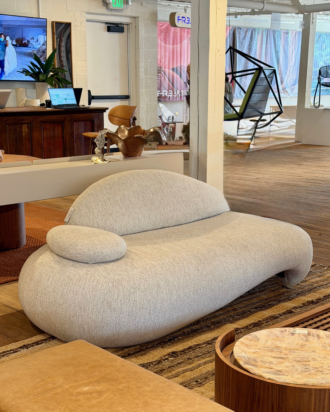 This sofa is a standout example of the ongoing curves trend with it's playful pebble-like shape and soft edges.